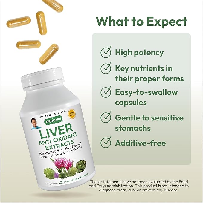 ANDREW LESSMAN Liver Anti-Oxidant Extracts 360 Capsules - Supports The Hard-Working Tissues of The Liver, Promotes Optimum Liver Health and Function. Milk Thistle, Turmeric and Artichoke Extracts