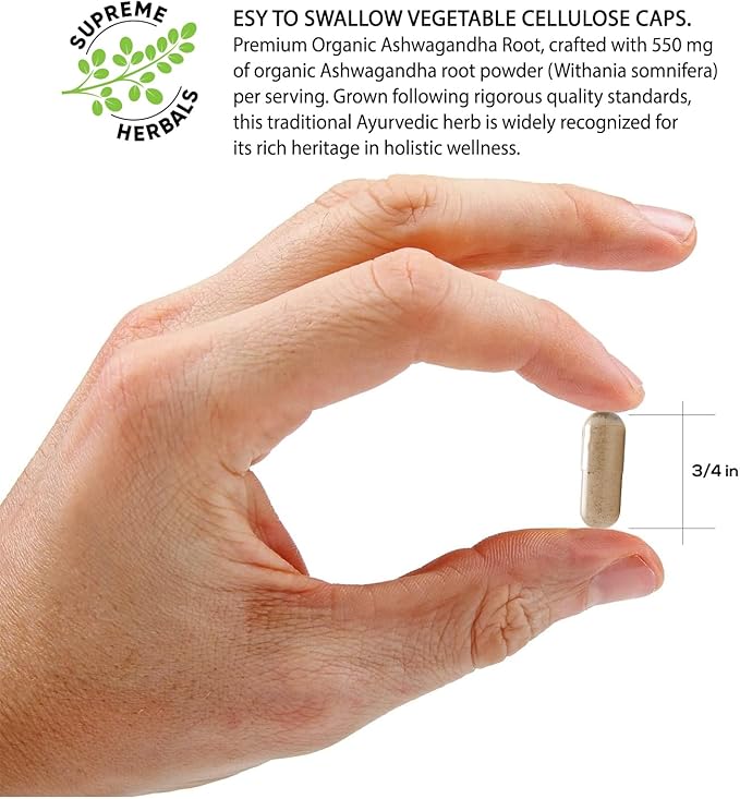- Convenient Daily Serving, achieve your wellness goals with just two capsules a day (1,000 mg total). Whether you’re looking for an Ashwagandha supplement to complement an active lifestyle or a holistic approach to self-care, Supreme Herbals makes it simple to stay on track.