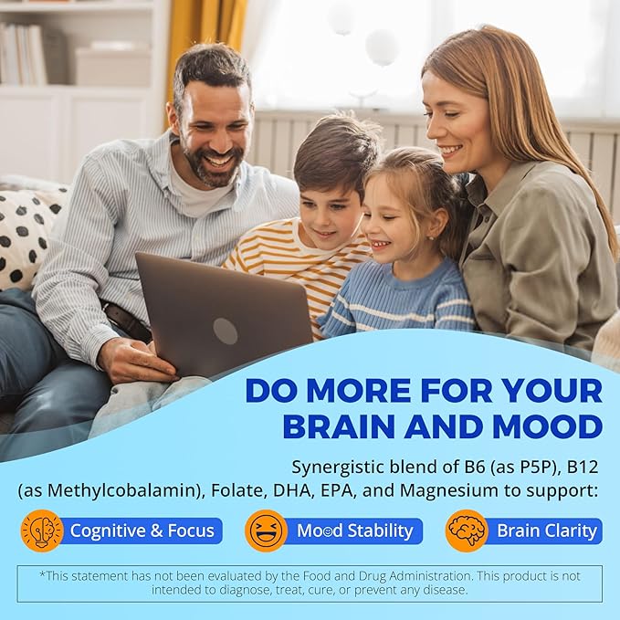 - [Natural Energy, Mood & Nerve Support]: Our Vitamin B12 + B6 gummies feature an expertly crafted formula that combines Methyl B12, active B6 (P-5-P), L-Methylfolate, Magnesium Citrate, and 600 mg of algae oil with 350 mg of Omega-3s (EPA & DHA). This synergistic blend helps reduce fatigue, support mood balance, promote healthy nerve signaling, and enhance relaxation — all in forms that are gentle on digestion.Support for daily energy, focus, and vitality.