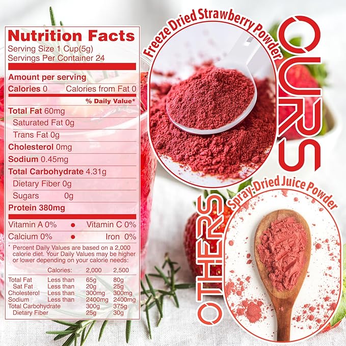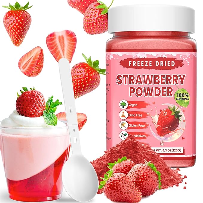 - Easy to Use & Freshness-Sealed Packaging – Store in a cool, dry place; refrigerate after opening to prevent clumping. This product comes in a durable canister sealed with aluminum film to maximize the freshness of the strawberry powder. Simply mix into juices, batters, or doughs for an instant strawberry kick—enjoy year-round!