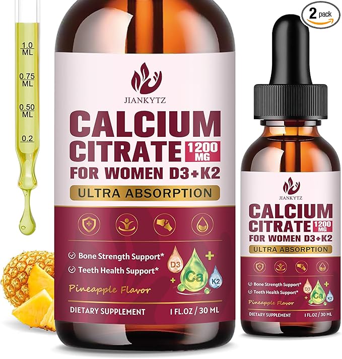 (2 Pack) Calcium Citrate with Vitamin D3 Liquid Drops for Women, 1200mg Ultimate Absorption Calcium Citrate Liquid Drops with Vitamin D3 K2 for Bones, Teeth Support, Vegan, Sugar-Free, 1 Fl Oz