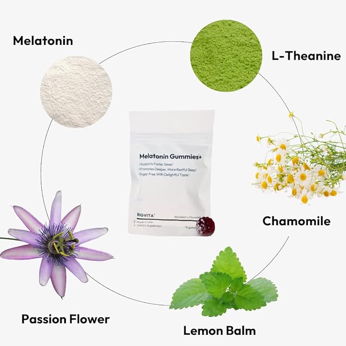 BIGVITA Melatonin Gummies+ | Natural Sleep Support with L-Theanine, Chamomile & Botanicals, Rest & Recharge
