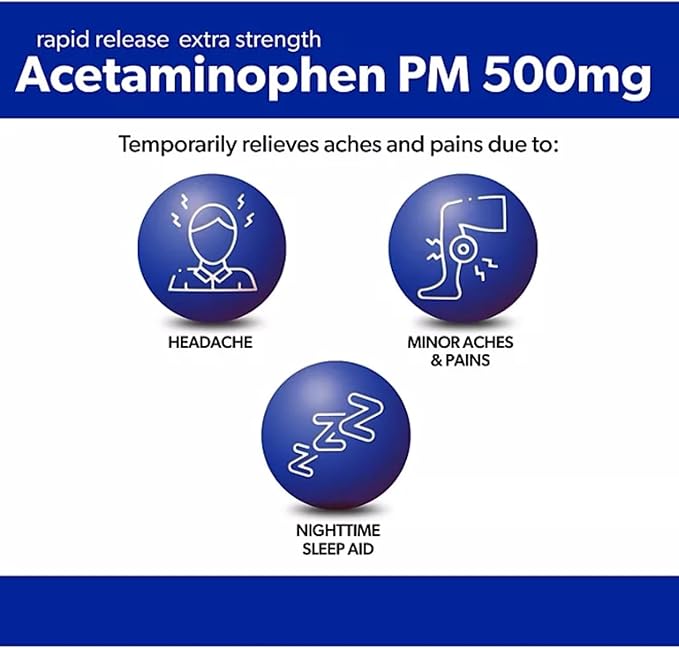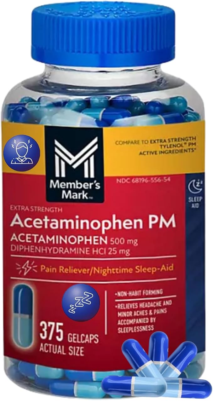 - Manage Nighttime Discomfort with Ease - Whether you're dealing with a headache, muscle pain, or the lingering aches of a long day, Extra Strength Acetaminophen PM Gelcaps provide the relief you need to fall asleep and stay asleep. These gelcaps are an ideal solution for managing nighttime discomfort, ensuring you get the rest you need to face the next day.