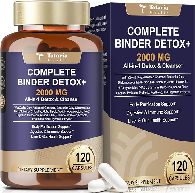 2000MG All-in-1 Detox Binder, Activated Charcoal, Zeolite, Bentonite Clay, Alpha Lipoic Acid, 7-Layer Detox & Cleanse Supplement, Liver & Gut Support, 120 Counts