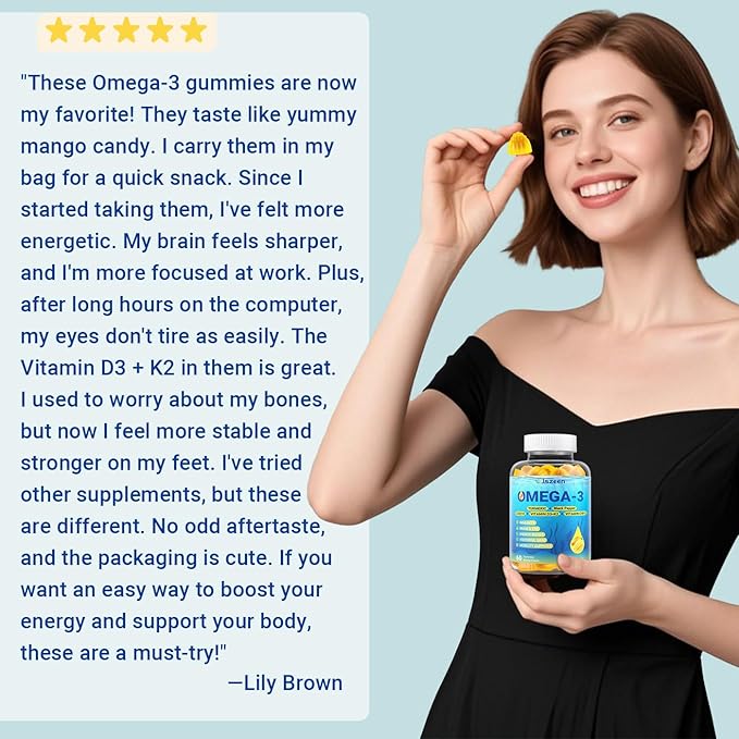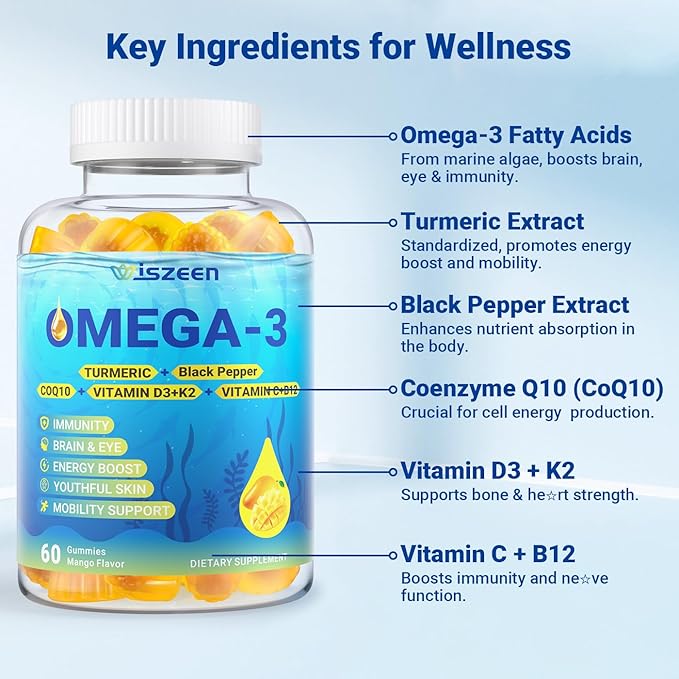 - OPTIMIZED NUTRIENT ABSORPTION: Our omega 3 fish oil gummies features an innovative liquid-filled gummy design for superior nutrient absorption and a delightful texture. And its unique low-temperature cold chain the fish removal technology stands out to ensure no fishy odor. Every delicious bite can help maximize your brain, skin, immunity, and overall vitality