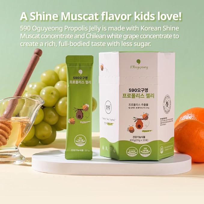 590Company Propolis Jelly Stick for Kids | Natural Bee Extract | Shine Muscat Flavor | Daily Routine Support | 20 Count