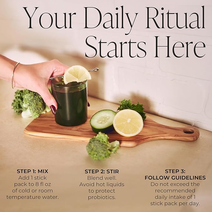 - Boosts Skin Radiance – This daily greens powder is formulated with plant-based ingredients that support collagen production, helping to maintain skin elasticity and a youthful glow from within.