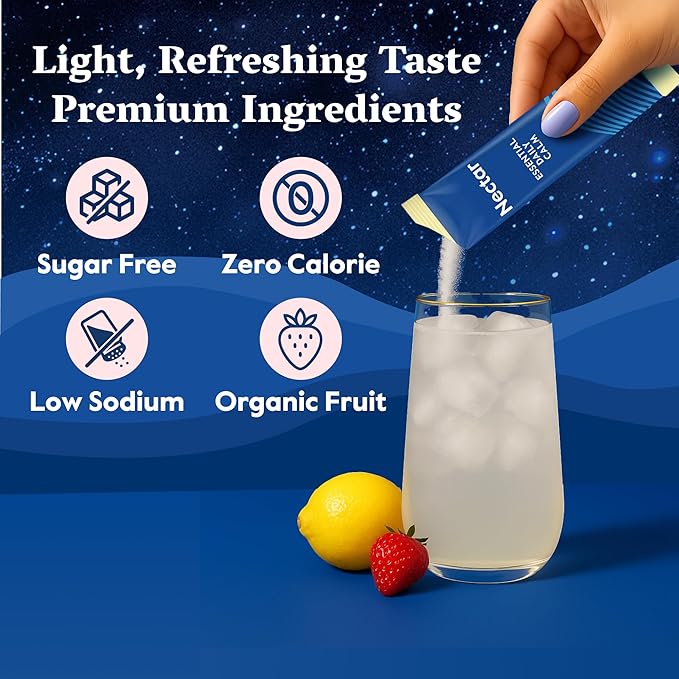 Nectar Calm Magnesium Glycinate Drink Mix - Sugar Free & Zero Calorie - with Organic Ashwagandha, Vitamin D, L-Theanine, Electrolytes - Deep Sleep, Relax, Focus & Calm - Non-GMO (Variety 30 Sticks)