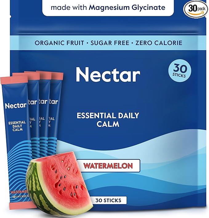 Nectar Calm Magnesium Glycinate Drink Mix - Sugar Free & Zero Calorie - with Organic Ashwagandha, Vitamin D, L-Theanine, Hydrating Electrolytes - Relax, Focus & Calm - Non-GMO (Watermelon 30 Sticks)