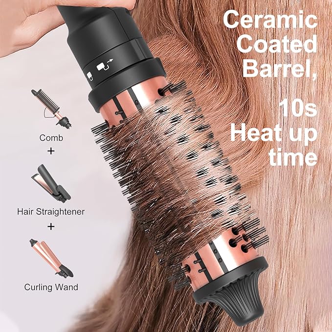 - Unique 4 in 1 Curling Iron Set:1.5 inch thermal curling brush,1.25 inch curling wand,1.25 inch hair straightener,0.68 inch straightener comb.These hair curler are designed to meet the most needs of your daily life in terms of hair styling.