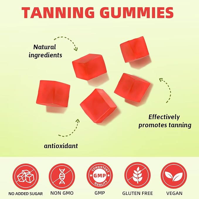 - Easy to Take & Convenient - Each gummy is precisely dosed, ensuring you get the right amount of tanning support with just a few delicious gummies daily. No more struggling with swallowing pills or measuring liquids. Simply enjoy the tasty gummies on the go