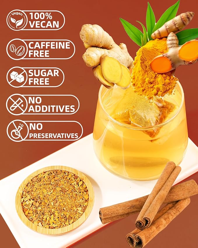 - Freshly Picked & Handcrafted Tea Bags:Our Turmeric ginger cinnamon tea bags use naturally dried, garden-fresh ingredients, expertly processed through traditional hand-made methods to lock in robust aroma and potency.