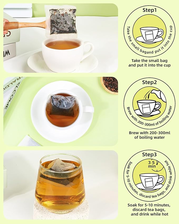 - 60 Tea Bags in Resealable Packaging—Convenience & Freshness:With 60 individual tea bags in a secure resealable pack, you get more servings to last longer. Brew effortlessly: steep 1 bag in 90°C+ hot water for 3-5 minutes, and reuse if desired. The airtight packaging locks in freshness, so every cup from the first to the 60th stays aromatic and fresh—ideal for home, work, or travel.