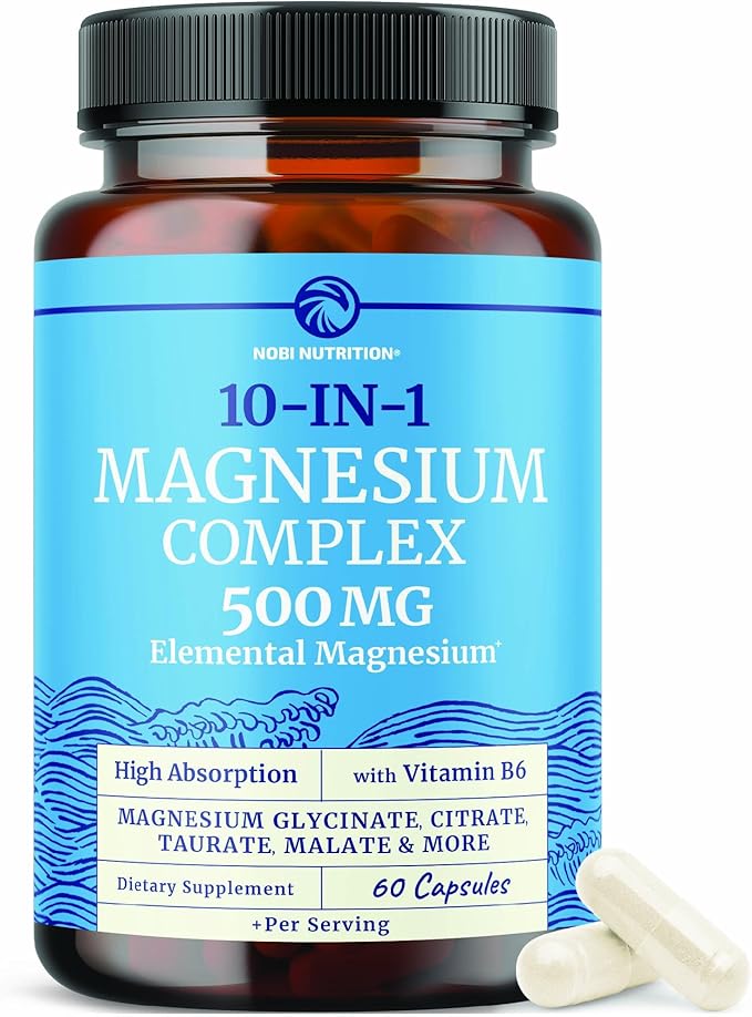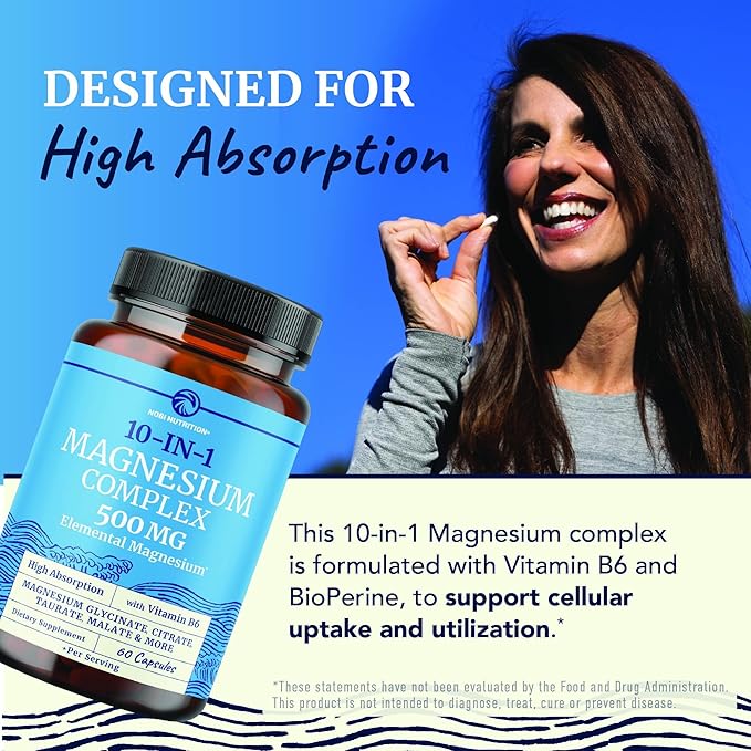 10 in 1 Magnesium Complex Supplement 500MG | Magnesium Citrate, Mag Glycinate, Malate & More | High Absorption Mag Complex with Vitamin B6 | Bone, Muscle & Heart Health Support | Non-GMO | 60 Ct.