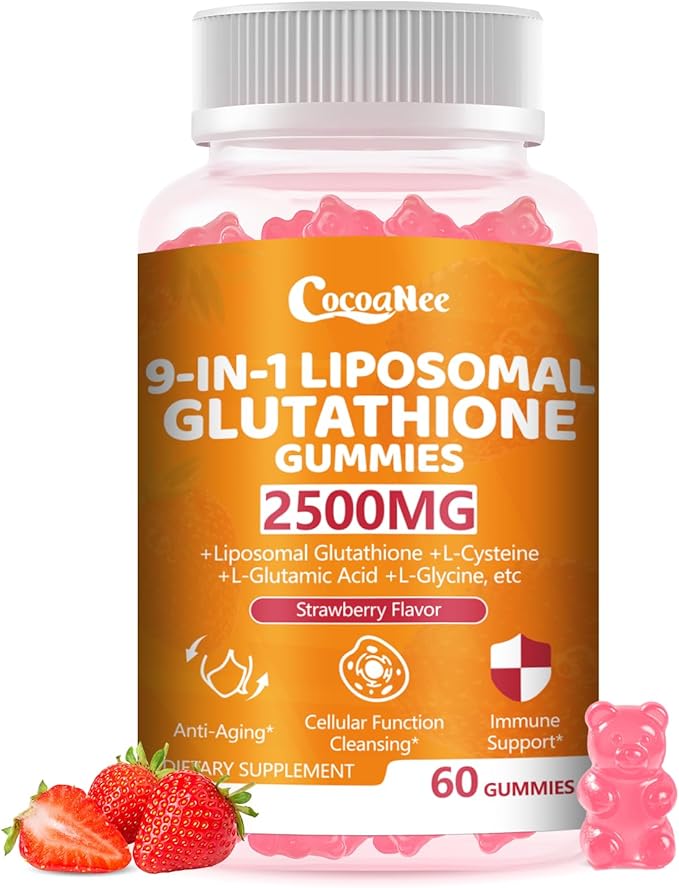 - 【Fun and Delicious】: CocoaNee Strawberry Liposome Glutathione Gummies containing 2500mg L-Glutathione, 150mg L-Cysteine, 150mg L-Glutamic Acid and 100mg L-Glycineextract are easy to take gummy suitable for women, men, adults and children. Enjoy the sweet taste and mouth-watering smell while improving your body.