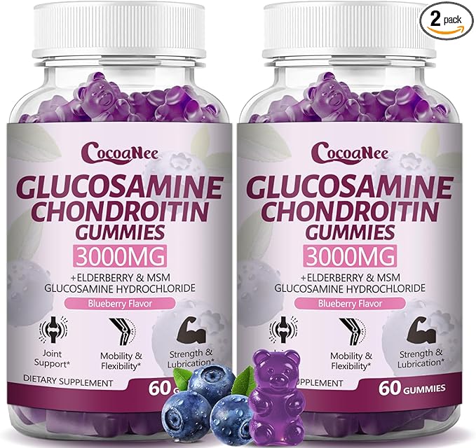 - Extra Benefits: Glucosamine chondroitin gummies added elderberry and turmeric extract, which has immune booster and high antioxidant support to take care of our more comprehensively. CocoaNee gummies are specially formulated for adults. In the pursuit of efficacy, but also pay attention to the taste experience of the product, whether as a daily care product or as a snack to relieve joint discomfort, you can easily and happily get health.