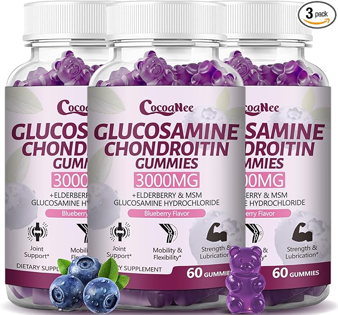 - Extra Benefits: Glucosamine chondroitin gummies added elderberry and turmeric extract, which has immune booster and high antioxidant support to take care of our more comprehensively. CocoaNee gummies are specially formulated for adults. In the pursuit of efficacy, but also pay attention to the taste experience of the product, whether as a daily care product or as a snack to relieve joint discomfort, you can easily and happily get health.