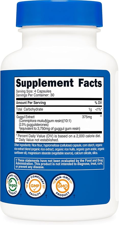 - Delivers 375 mg of guggul at a 10:1 extract, which is the equivalent of 3,750 mg guggul extract