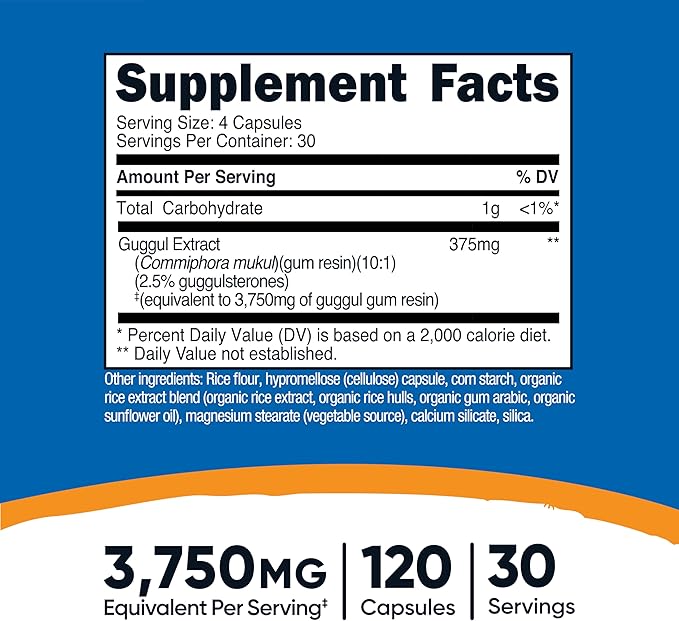 Nutricost Guggul Extract Supplement (3750 mg Equivalent) 120 Capsules - 30 Servings