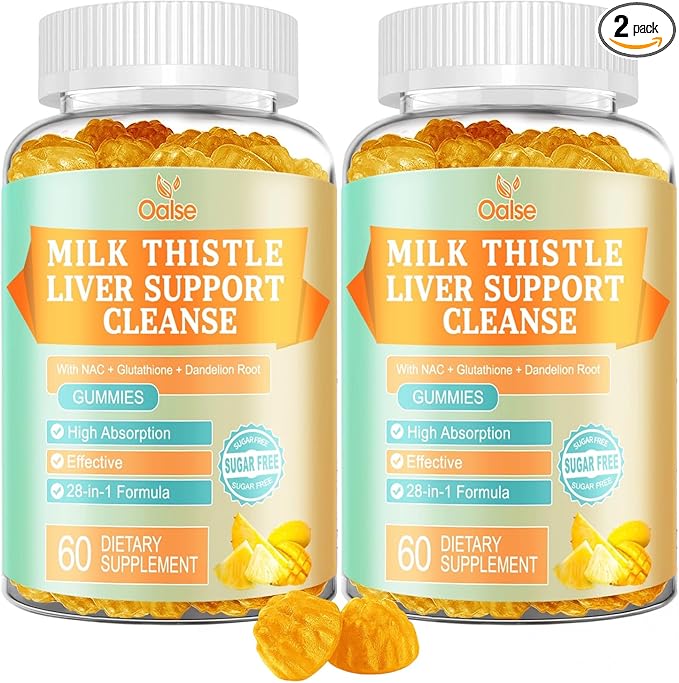 OALSE(2 Pack 2000 Mg Milk Thistle Gummies - Mango Pineapple - with NAC, Glutathione, Dandelion Root, etc - Gentle Detox* & Cleanse*, Gluten-Free, 120 Counts