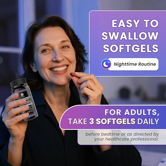 - Nighttime Wellness & Mood Support Softgels: Specially designed for women’s nighttime needs, this calming complex features L-Theanine, Lemon Balm, and Passionflower to help promote relaxation, mood balance, and restful sleep—making it more than your standard evening primrose oil for women.