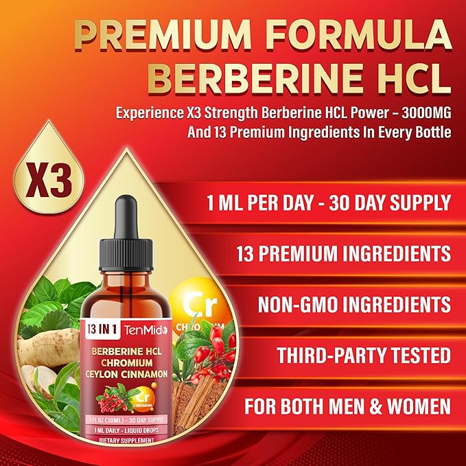 - Powerful Benefits: 13in1 Berberine Liquid Drops Supplement to support the heart health, immune health and overall vitality