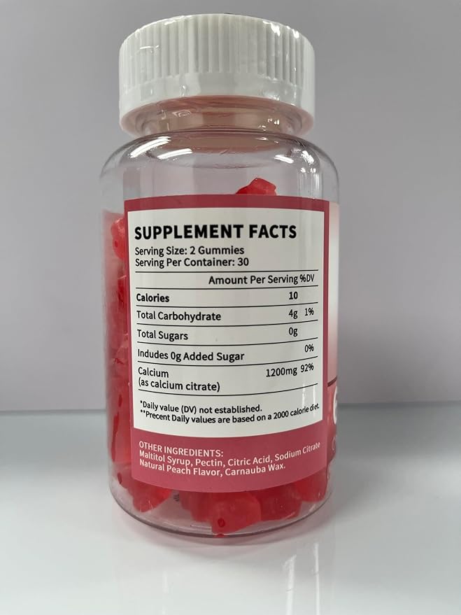 - Sugar-free Gummy Bears: Our calcium gummies for men and women are designed in a unique bear shape and are 5 times more absorbable than regular gummies. They contain no sugar, no artificial sweeteners, and have a natural peach flavor for a pleasant taste with no aftertaste. They are easy to digest, won't stick, and won't burden the body, so 2 gummies a day will easily meet your daily calcium needs and promote overall health. Two bottles contain 120 gummies, a 60-day supply. Make this simple supplement a seamless healthy habit.