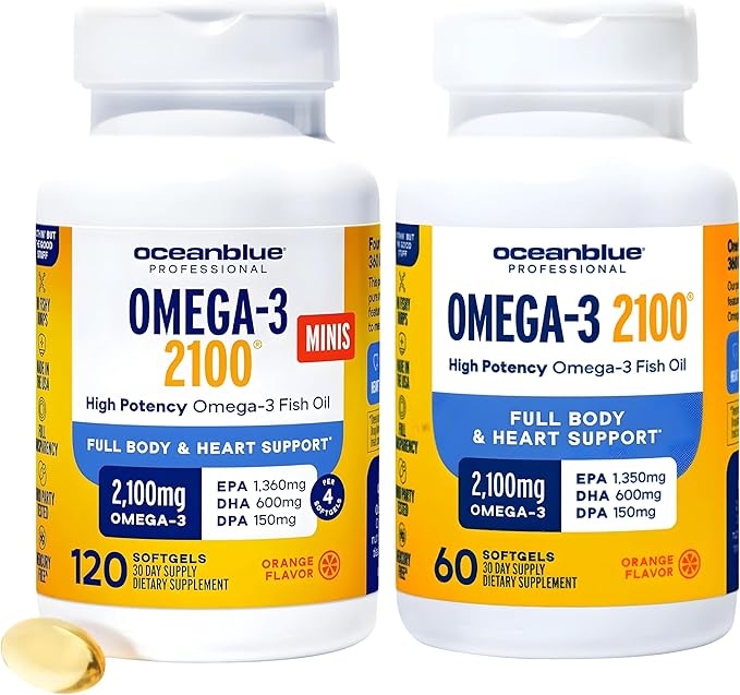 Oceanblue Omega-3 2100 Advanced Duo – Triple Strength Fish Oil with EPA, DHA, DPA – 120ct Minis + 60ct Softgels – Heart & Brain Support – Orange Flavor 2 Pack