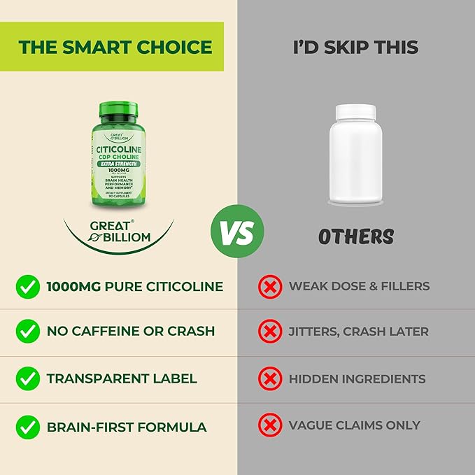 - MAX STRENGTH CITICOLINE SUPPLEMENTS: Our science-backed formula delivers 1000mg of high-quality CDP Choline per serving, one of the most effective choline supplements for restoring natural choline levels and supporting overall brain health. Designed for both men and women, this citicoline supplement is a top choice for cognitive support.