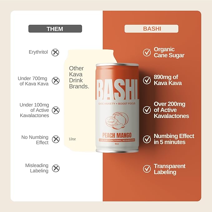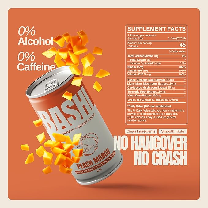 - Calm Mind, Relaxed Body – Infused with premium kava root extract, Bashi Kava Drink helps promote relaxation, reduce stress, and support a calm, balanced mood without alcohol or caffeine.