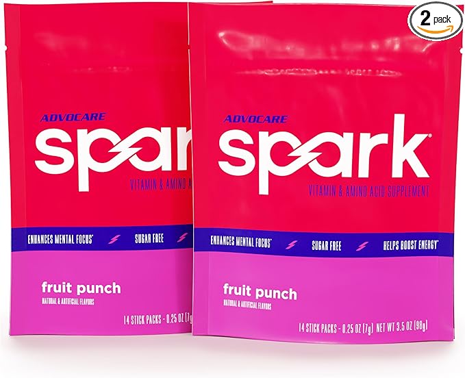 AdvoCare Spark Vitamin & Amino Acid Supplement - Focus & Energy Drink Powder Mix with Vitamin A, B-6, C & E - Also Includes L-Carnitine & L-Tyrosine - Fruit Punch, 14 Stick Packs, 2 Pack