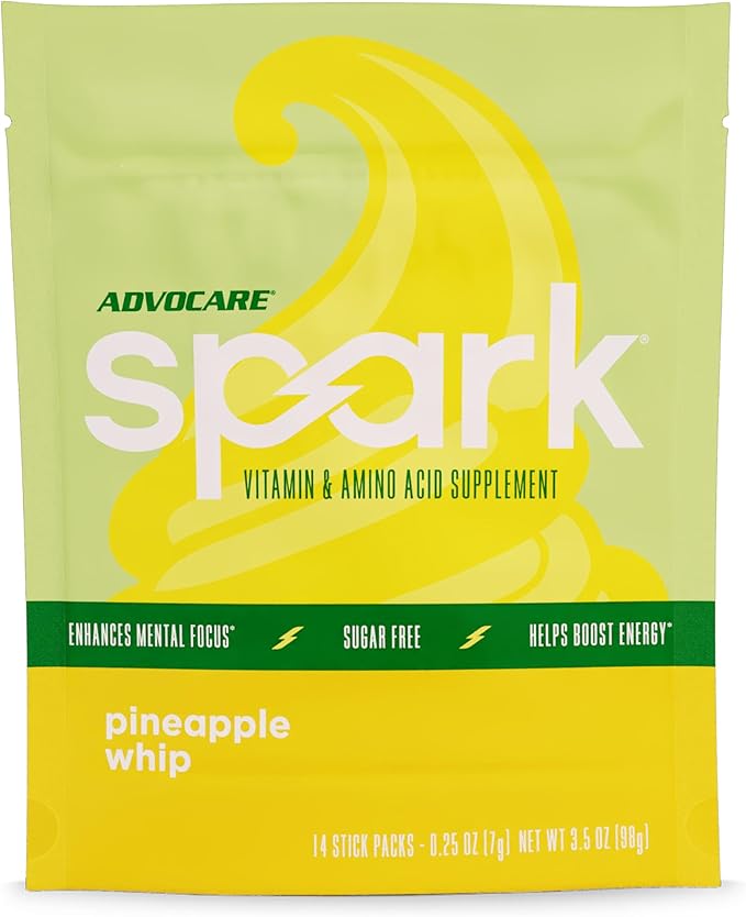 AdvoCare Spark Vitamin & Amino Acid Supplement - Focus & Energy Drink Powder Mix with Vitamin A, B-6, C & E - Also Includes L-Carnitine & L-Tyrosine - Pineapple Whip, 14 Stick Packs