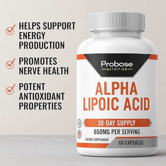 - Alpha Lipoic Acid (ALA) – Powerful antioxidant support for cellular energy, nerve function, and healthy blood sugar metabolism.