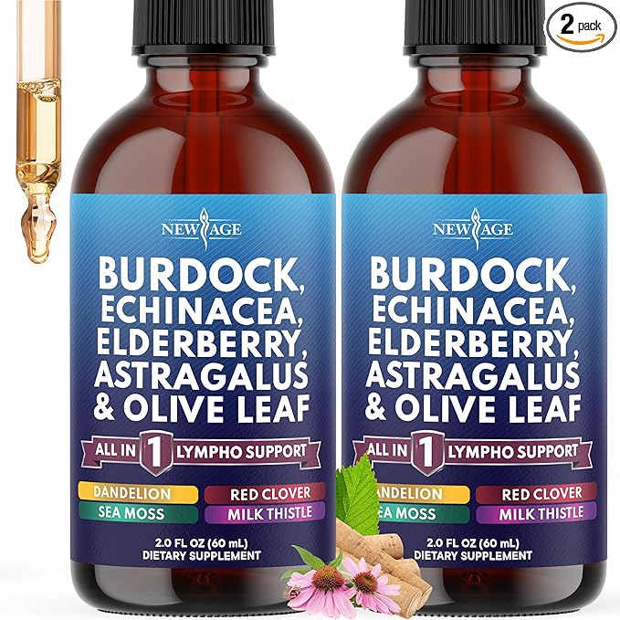 NEW AGE Lymphatic Drainage Supplement - Burdock Lymphatic Support Drops - Burdock Root, Mullein, Echinacea, Elderberry, Dandelion, Astragalus, Milk Thistle, Red Clover - 4 oz