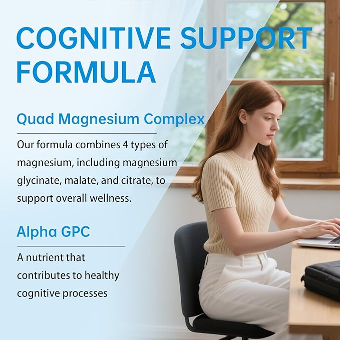 - Targeted Brain & Mind Support: Our unique formula combines four bioavailable forms of Magnesium (Glycinate, Threonate, Citrate, Malate) with Alpha GPC, Ashwagandha, and L-Theanine. This blend is designed to provide comprehensive support for cognitive function and mental well-being during demanding times.