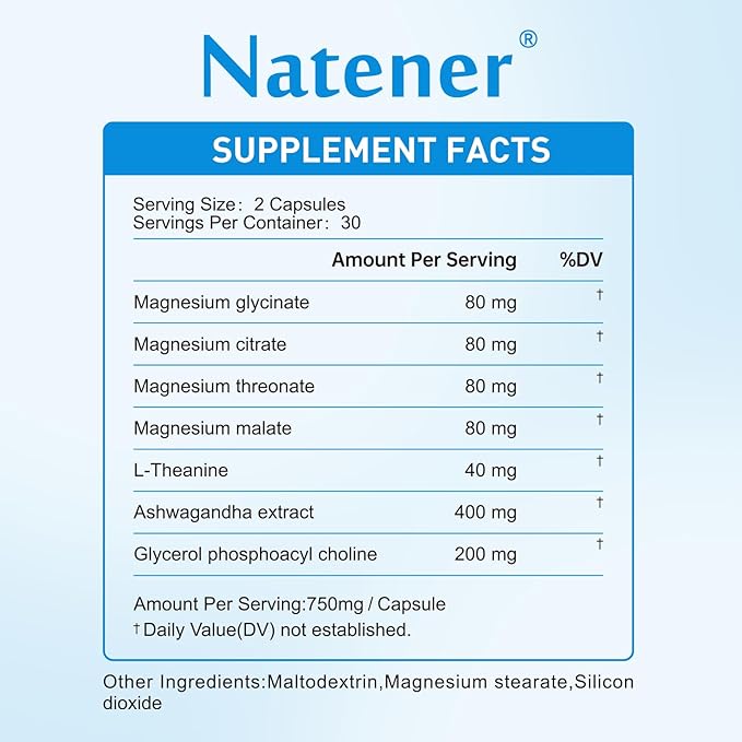 - For Demanding Lifestyles: Natener's Magnesium Complex is crafted for individuals with active lives, such as professionals, students, and those who spend significant time online, looking for nutritional support to help maintain mental sharpness and overall well-being throughout the day. Just two capsules daily.
