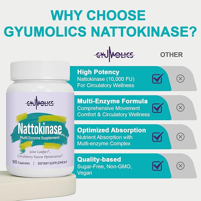 - 10,000 FU Nattokinase per Serving: A science-backed formula featuring fibrin-metabolizing enzymes, designed to complement circulatory wellness as part of an active lifestyle.