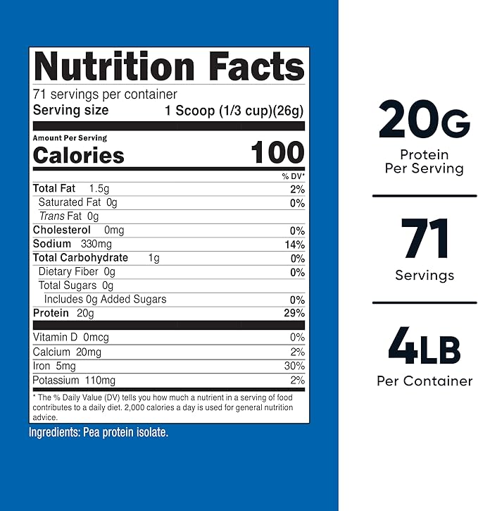 - 71 servings per container of unflavored pea protein — ideal for smoothies, baking, or custom blends