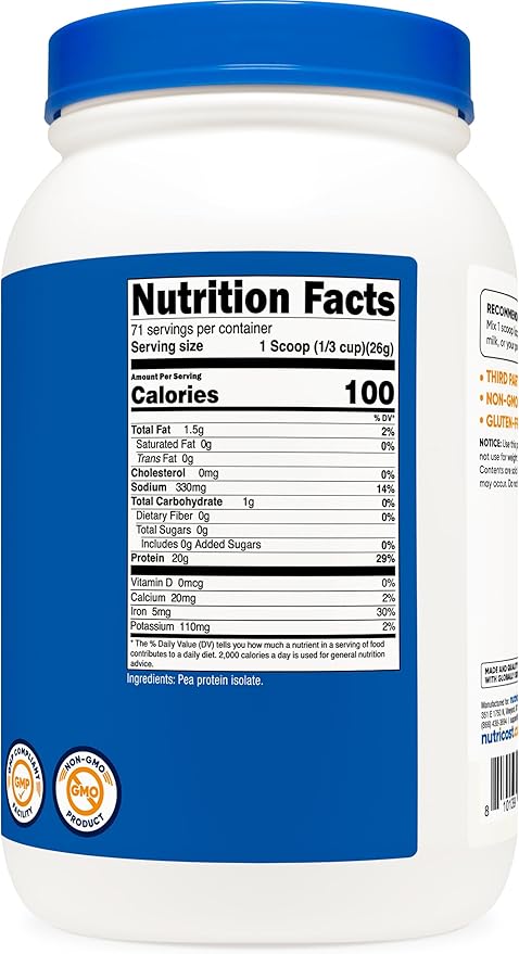 Nutricost Pea Protein Powder (4 LBS) Unflavored - 20g of Vegan Pea Protein Isolate, GMO-Free, Gluten-Free, 71 Servings