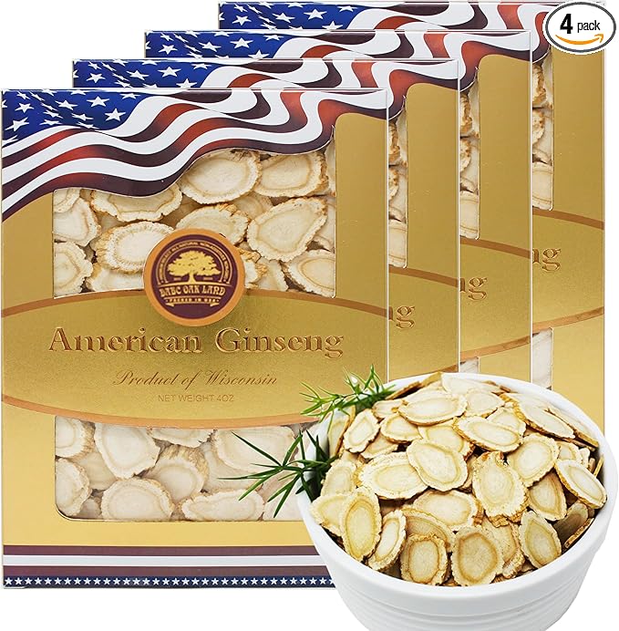 1 LB American Ginseng Slices from Wisconsin, American Wisconsin Ginseng Slices Root for Tea, Energy for Men Women Health Boosts Immunity,多年生長 大园切片 花旗參/西洋參, Lager Round Strip 4 Box of 4OZ
