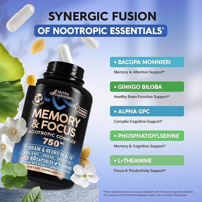 - Trustworthy Service — at NUTRAHARMONY, we are committed to providing only premium-quality supplements, including our carefully crafted Memory & Focus capsules. You can trust that you’re receiving a scientifically formulated brain supplement. Our exceptional customer service ensures that your satisfaction is our top priority, making your wellness journey as seamless and trustworthy as possible.